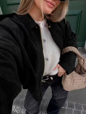 Diseño europeo, corte oversize y textura premium tipo gamuza. Combina con jeans, faldas o vestidos — ideal para cualquier ocasión.